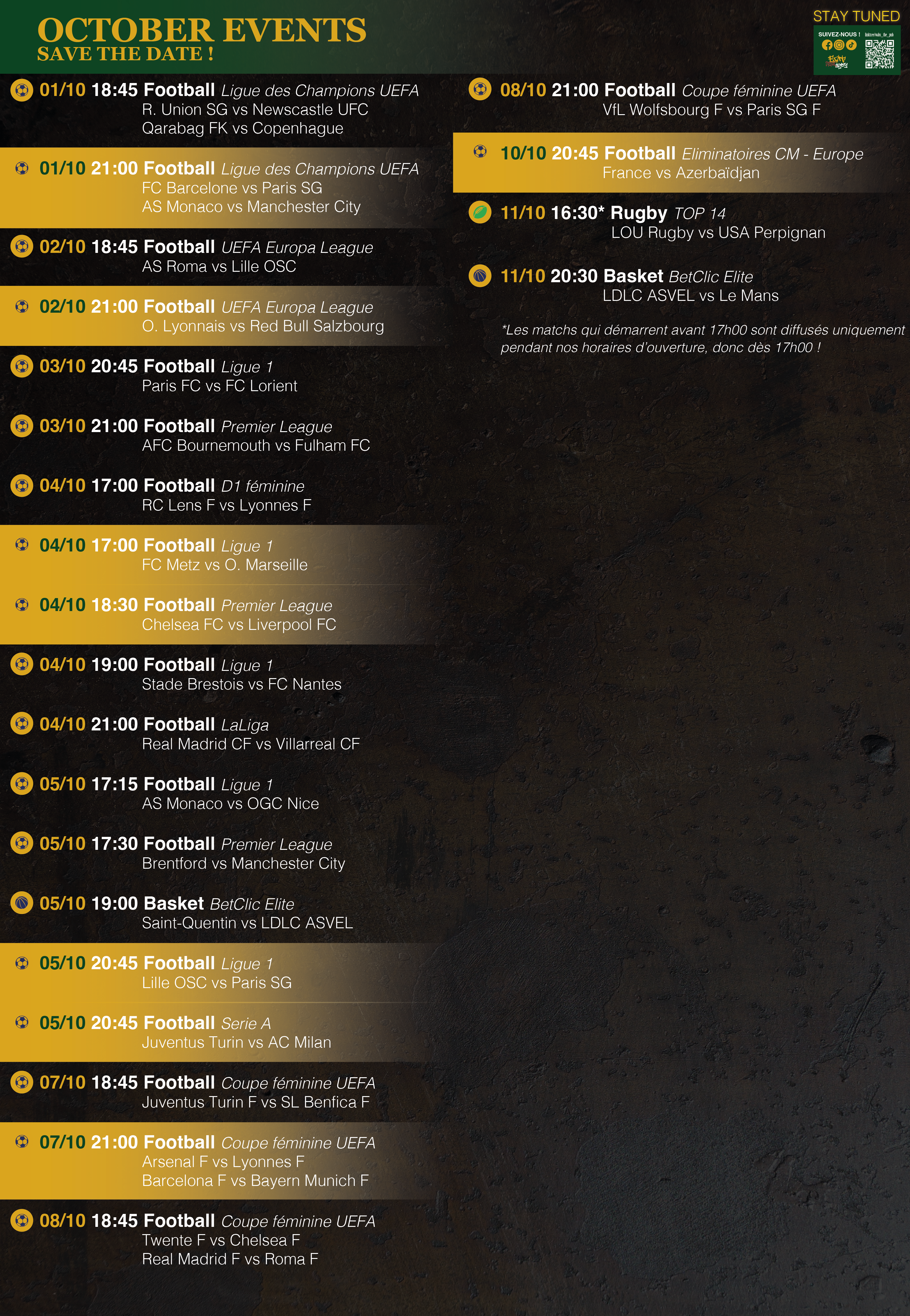 Viens les suivre sur nos écrans ! Ambiance garantie ! Book ta table !